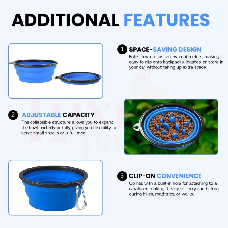 Versatile and practical, this multi-purpose bowl is suitable for water, dry food, wet food, or snacks, making it ideal for dogs, cats, puppies, and even multiple pets. The non-slip, stable base helps reduce spills and mess, so mealtime stays clean and stress-free. Lightweight and portable, this foldable pet bowl is a must-have accessory for every pet parent on the move.